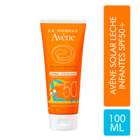 AVÈNE Solar Leche Infantes SPF 50+ está especialmente formulado para la piel sensible y delicada de bebés y niños. Brinda una muy alta protección UVA/UVB gracias a su sistema de filtros fotoestables y seguros, combinados con Pre-tocoferil (antioxidante) y Agua Termal de Avène, que suavizan, calman y protegen la piel frente a las agresiones del sol. Su textura en leche es ligera, fácil de aplicar y resistente al agua, sin dejar residuos blancos ni sensación pegajosa. No contiene perfume, alcohol ni parabenos.