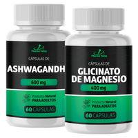 Promoción: 1 frasco de 60 cápsulas de Ashwagandha 600 mg + 1 frasco de 60 cápsulas de Glicinato de Magnesio 400 mg.
